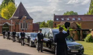 A full service funeral at a local crematorium and on the day of your choosing, with a celebrant or minister leading the service, 75 orders of service, with a funeral cortege — hearse and limousine — to a local home and on to place of service, a conductor and four bearers, and a high-quality coffin.